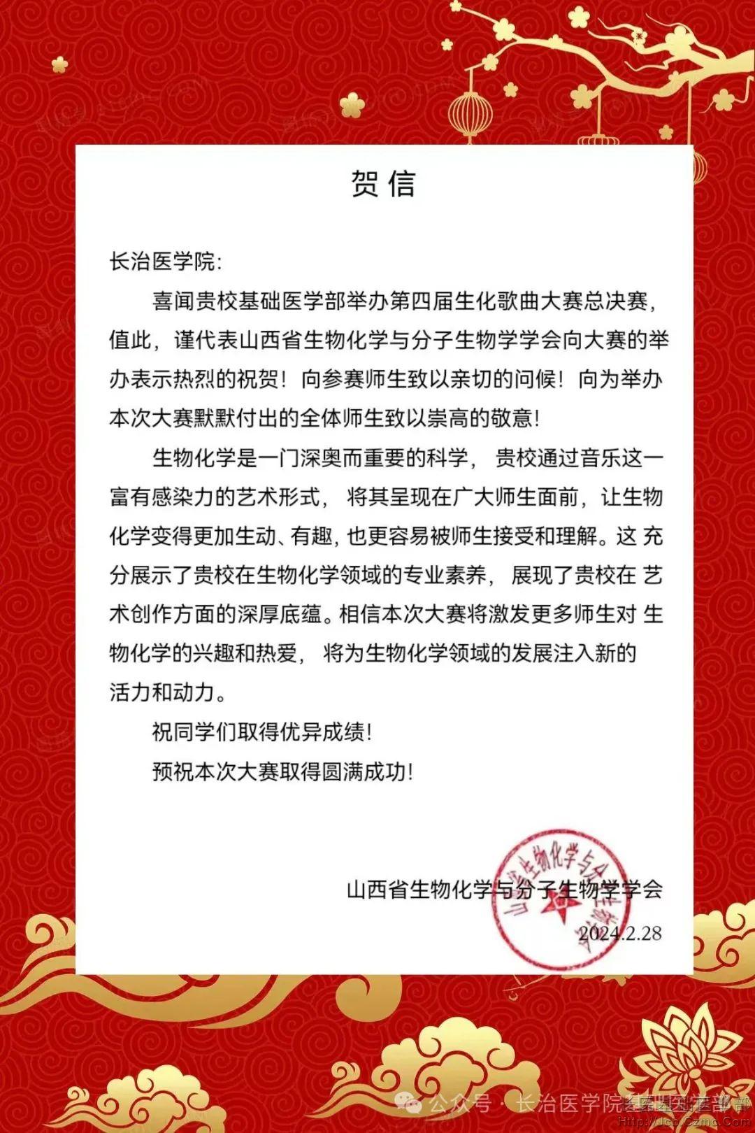 山西省生物化学与分子生物学学会向公司发来贺信