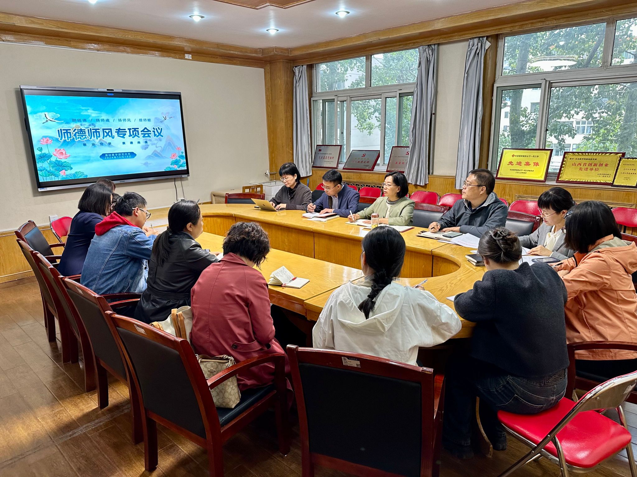 为深入贯彻落实党的二十大精神、二十届三中全会精神和习近平总书记在全国教育大会上的重要讲话精神,进一步加强师德师风建设,基础医学部于10月18日召开师德师风专项会议,基础医学部师德师风建设工作小组成员、辅导员、综合办参加会议。会议由基础医学部副主任原丽主持。