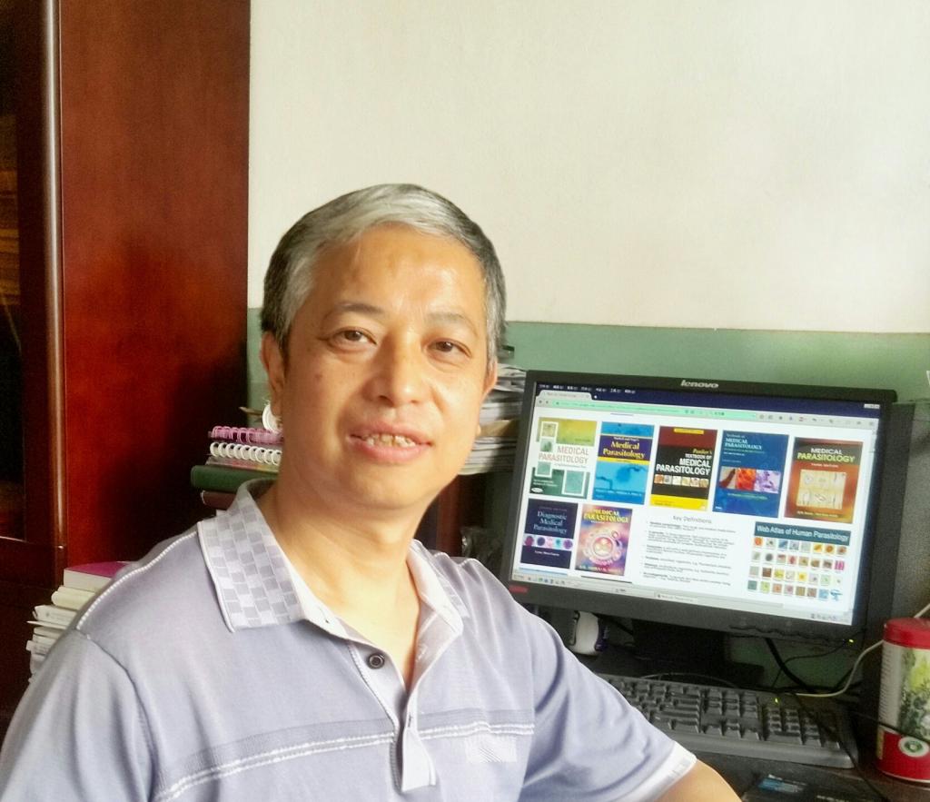 在长医北区西边有座绿树环绕、略显陈旧的四层建筑,寂静地坐落在校园一角。走上二楼,楼道的墙面上悬挂张贴着数幅寄生虫相关的图片和文字介绍。这些内容都是由他的团队提供和制作的,他是这样一位老师,炯炯有神的眼睛,带口音的普通话让原本就很有趣的谈话更有了别样的趣味。课堂上,他谈笑风生,用自己的人格魅力感染着每一位员工;生活中,他想法新奇,用执着的热爱和对完美的追求诠释了多样人生。他就是人体寄生虫学教研室主任刘明社老师。