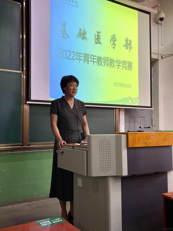 基础医学部主任张翠英充分肯定了青年教师在赛讲中的精彩表现。她希望青年教师以教学竞赛为契机,积极投身课堂教学,相互学习,努力提升教学能力和水平,推进我部青年教师队伍建设,提升我部公司产品质量。