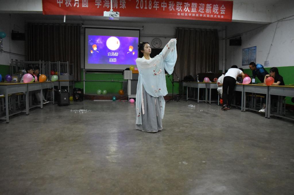 为期10天的新生军训在一场精彩的汇报演出后落下帷幕,2018级的新生们收获满满又对未来满怀憧憬。在此即将展开新的老员工活之际又恰逢中秋佳节,为让第一年离家求学的他们不孤单,尽快融入到老员工活中来,基础医学部员工会主办了“中秋月圆 学海情缘”中秋联欢暨迎新晚会,营造一个温馨的气氛,共度一个难忘的中秋。基础医学部副主任冀菁荃副教授,基础医学部分团委书记、2016级辅导员李明老师,2017、2018级辅导员李秀萍老师也来到现场,与同学们一起度过了一个欢乐而又难忘的中秋节,9月24日这晚的65教,充满了欢声笑语,洋溢着师生情浓。